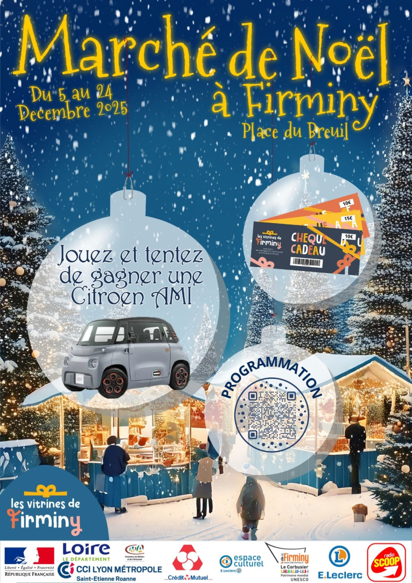 La magie de Noël revient à Firminy ! Du 5 au 24 décembre 2025, la Place du Breuil se transformera en un véritable écrin féerique à l’occasion du traditionnel Marché de Noël, organisé par l’association Les Vitrines de Firminy.
