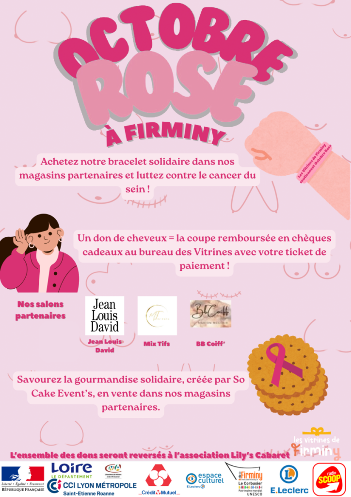Dans les magasins partenaires, vous trouverez des bracelets marqués « Les Vitrines de Firminy soutiennent Octobre Rose ».